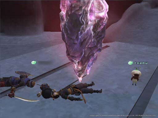 殴るのは侍だけで、青がコピー処理と侍が魅了された時の代わりの盾ということだったのですが、赤のヘイトが高くなりすぎて引き寄せ食らったあたりで壊滅。